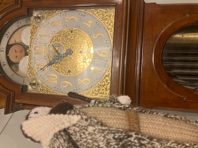 The donkey wanted to go into the shower and I did let him stand inside but I really didn’t fancy the smell of wet donkey about the place so I wouldn’t turn the water on, although he wanted me to do. Jospeh was fascinated by it – perhaps if he had lived a few centuries later he might have been a plumber rather than a carpenter! He really did like my grandfather clock and I could see that he would love to have had a go at making one himself although of course the clock face and its workings rather baffled him.